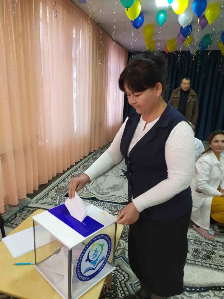 Шундан сўнг ташкилот касаба уюшма қўмитасининг ҳисобот-сайлов йиғилиши ўтказилди. Унда қўмита раиси 2020-2025 йиллар давомида амалга оширган ишлар юзасидан ҳисобот берди. Ҳисоботда ходимларнинг ижтимоий-иқтисодий манфаатларини ҳимоя қилиш, меҳнат шартларини яхшилаш, таълим сифати ва ташкилот фаолиятини ривожлантириш борасида қўмита томонидан олиб борилган ишлар тўғрисида сўз юритилди.