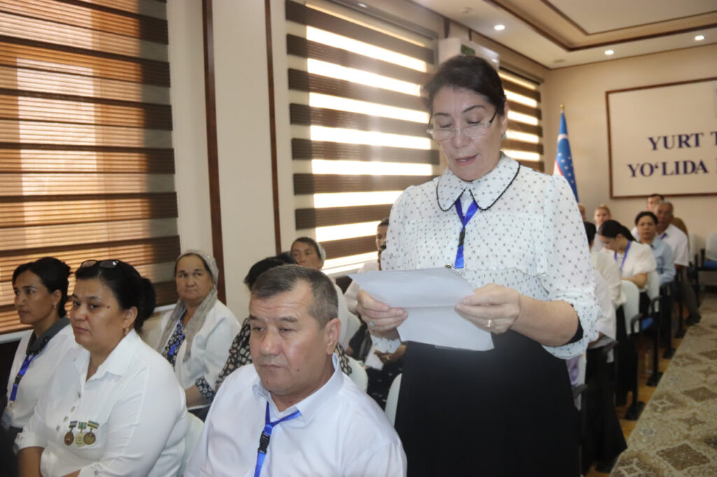 Таълим ва фан ходимлари касаба уюшмаси Республика кенгашининг Хоразм вилояти бўйича масъул ташкилотчиси Муяссар Раҳимова бўлинманинг ўтган беш йиллик фаолияти тўғрисида ахборот берди.