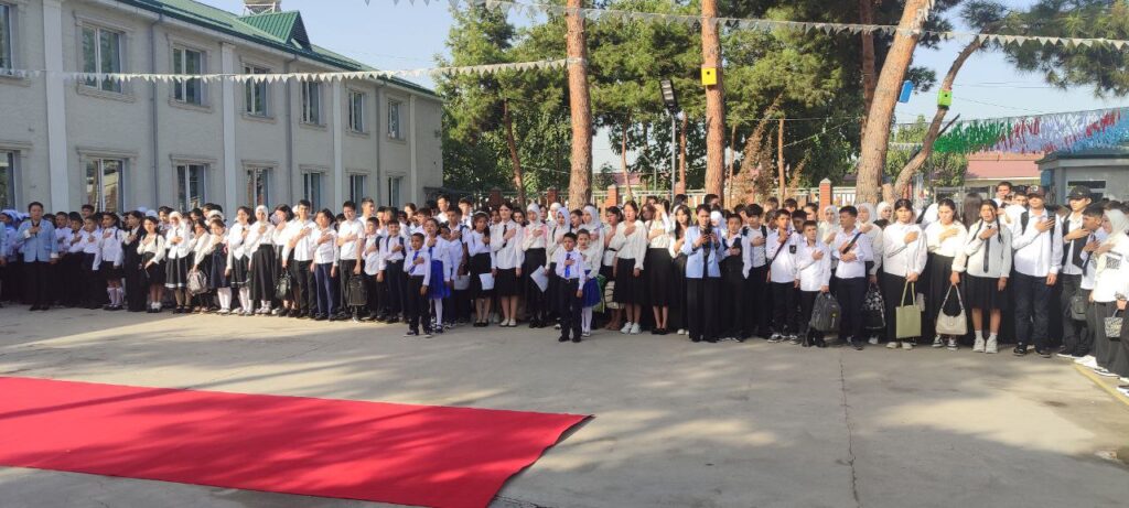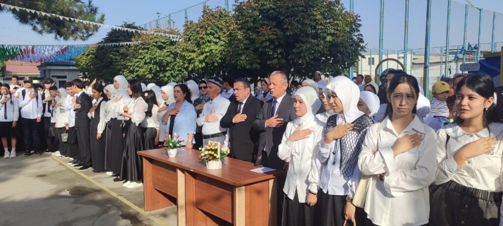 Андижон шаҳар 10-умумтаълим мактабида “Биринчи қўнғироқ” тадбири соат 8:00 да бошланиб “Ватан учун, миллат учун, халқ учун!” шиори остида ташкил этилди. Тадбирни ўтказиш учун мактаб ҳудуди мустақиллик байрами кайфиятида “Биринчи қўнғироқ” ва Мустақилликнинг ўттиз тўрт йиллигига бағишланган “Ватан учун, миллат учун, халқ учун!” шиорига монанд тарзда безатилиб, тадбир санитария-гигиена ва тозалик талабларига, ёнғин ва техника хавфсизлигига риоя қилган ҳолда ташкил этилди.