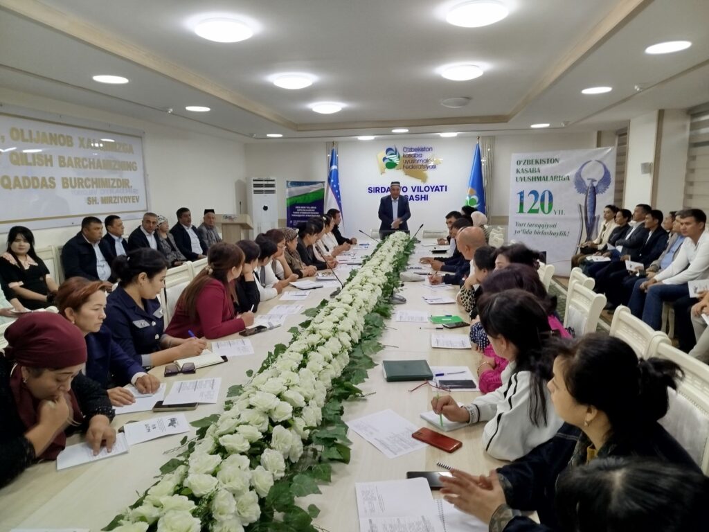Тадбир давомида Ўзбекистон таълим ва фан ходимлари касаба уюшмаси Республика кенгашининг Сирдарё вилояти бўйича масъул ташкилотчиси А.Мамарасулов ҳамда бўлим мудирлари томонидан юқори ташкилотларнинг тавсия ва дастурлари асосида тайёрланган қизиқарли маърузалар тингланди. Маърузачилар ўз чиқишларида касаба уюшмалари ҳаракатининг шонли 120 йиллик тарихи, меҳнаткашларни ҳимоя қилишда ташкилотнинг роли, унинг нуфузини янада ошириш йўллари ва бу борадаги муҳим вазифалар ҳақида батафсил маълумот бердилар.