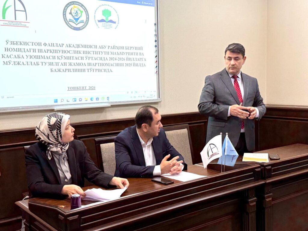 Илмий-тадқиқот муассасаларида фаолият юритаётган олимлар ва ходимлар учун муносиб меҳнат шароитларини яратиш, уларни ижтимоий қўллаб-қувватлаш тизимини мустаҳкамлаш илм-фан ривожининг муҳим омилларидан биридир. 2026 йил 26 февраль куни Абу Райҳон Беруний номидаги Шарқшунослик институтида ана шу масалаларга бағишланган меҳнат жамоасининг умумий йиғилиши бўлиб ўтди.