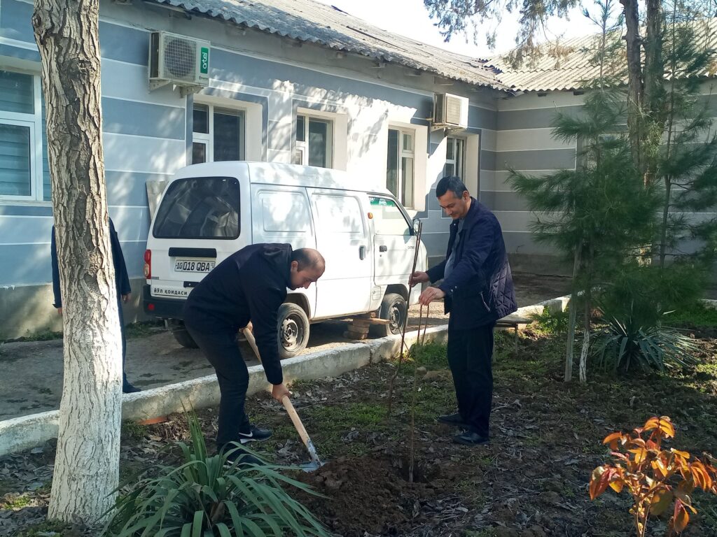 Меҳмонлар ва ташкилот ходимлари бир ёқадан бош чиқариб, таълим бўлими тасарруфидаги боғ ҳудудига яхши ниятлар билан олма дарахти кўчатларини ўтқаздилар. Экилган бу ниҳоллар келажакда мевага кириб, юртимиз экологиясига ва мўл-кўлчиликка хизмат қилиши шубҳасиз.